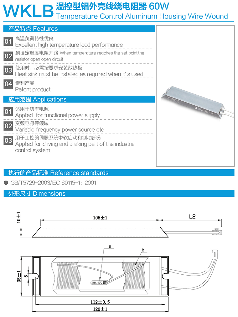 WKLB温控型铝外壳线绕电阻器